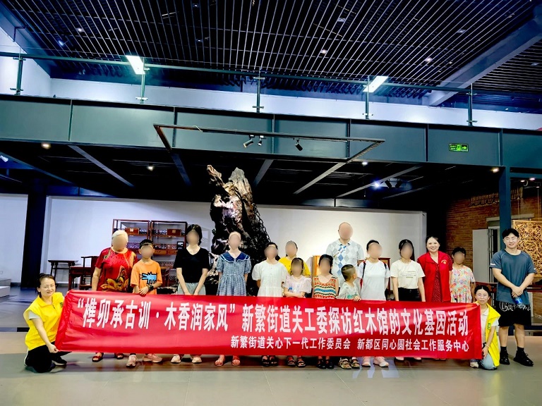 7月28日,新繁街道香迪红馆内木韵悠悠,一场以传统工艺为纽带的文化之旅在此展开。新繁街道关心下一代工作委员会联合同心圆社工组织,共同举办了“榫卯承古训·木香润家风——探访红木馆的文化基因”活动,吸引了20余名困境儿童青少年参与。
