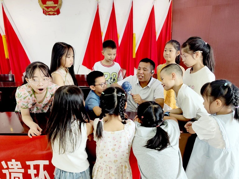“竹趣童编·绿满郭家”棕编工坊中,非遗传承人谭老师现场示范“卷、折、编、缠”技法,“棕叶是天然材料,用完还能降解,比塑料花环保多啦!”孩子们在编织中明白“身边草木皆是宝”,学会发现身边的可循环资源;“剪艺童心·绿韵郭家”剪纸工坊里,结合垃圾分类知识,引导孩子们剪出“矿泉水瓶、苹果核、废电池”等图案,用红纸勾勒“人与自然和谐共生”的画面。“剪完的碎纸还能当肥料呢!”志愿者的一句话,让环保的种子在孩子心中悄悄发芽。