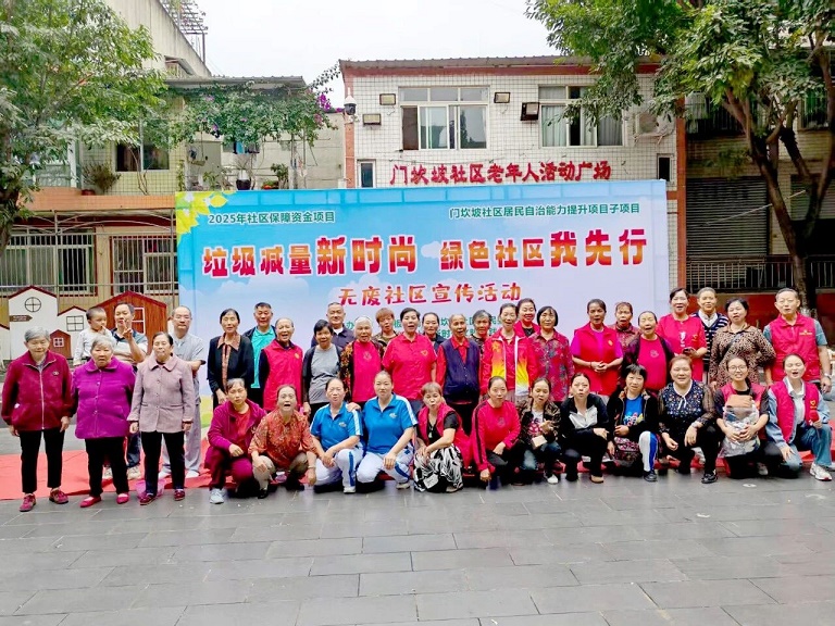 为深入推动绿色低碳生活方式,提升居民垃圾分类与减量意识,2025年10月16日上午,石板滩街道门坎坡社区联合“绿源社”环保自组织,在社区广场成功举办了一场以“垃圾减量新时尚,绿色社区我先行”为主题的无废社区宣传活动。活动由同心圆社工提供支持,吸引了百余位居民踊跃参与,现场氛围热烈。