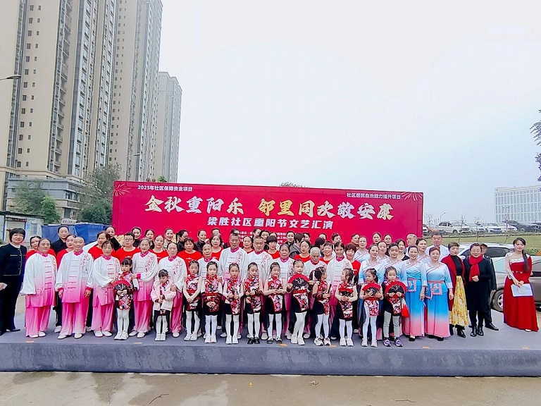 10月29日重阳节当天,石板滩街道梁胜社区日间照料中心广场变成了一片欢乐的海洋。一场主题为“金秋重阳乐 邻里同欢敬安康”文艺汇演在此热烈举行,为社区老年居民送上了一份丰厚的节日贺礼。本次活动由由石板滩街道梁胜社区居民委员会主办,四川新木通风设备有限公司、成都宏域通风工程有限公司、四川鑫盛筑安科技有限公司、成都开祥空调设备有限公司赞助,社区新时代文明实践站、社区老年人协会协助,同心圆社会工作服务中心承办。