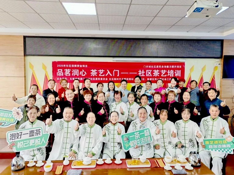 为提升居民自治参与热情,丰富社区文化生活,2025年11月20日下午,石板滩街道门坎坡社区居民委员会、社区新时代文明实践站联合同心圆社会工作服务中心,在社区会议室成功举办了“品茗润心 茶艺入门”社区茶艺培训活动。本次活动吸引了40余名社区居民积极参与,涵盖各年龄层,反响热烈。