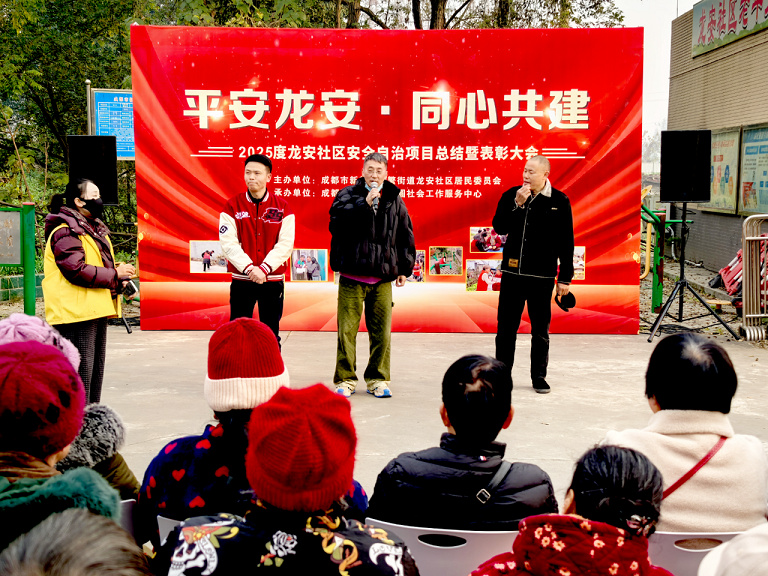 岁月如梭,步履铿锵;共治路上,硕果满枝。2025年12月17日,龙安社区隆重举行“平安龙安·同心共建”2025年度社区安全自治项目总结表彰大会,系统回顾项目年度实施历程,集中展示社区安全治理成果,并对在安全自治工作中涌现出的先进集体和个人予以表彰。本次活动既是一次成果展示的盛会,也是一次凝聚共识、展望未来的动员会,标志着“平安龙安”建设迈入了常态化、长效化的新阶段。